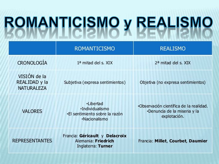 El realismo y el naturalismo reflejan la realidad tal y como es, contrariamente a lo que sería el idealismo romántico.